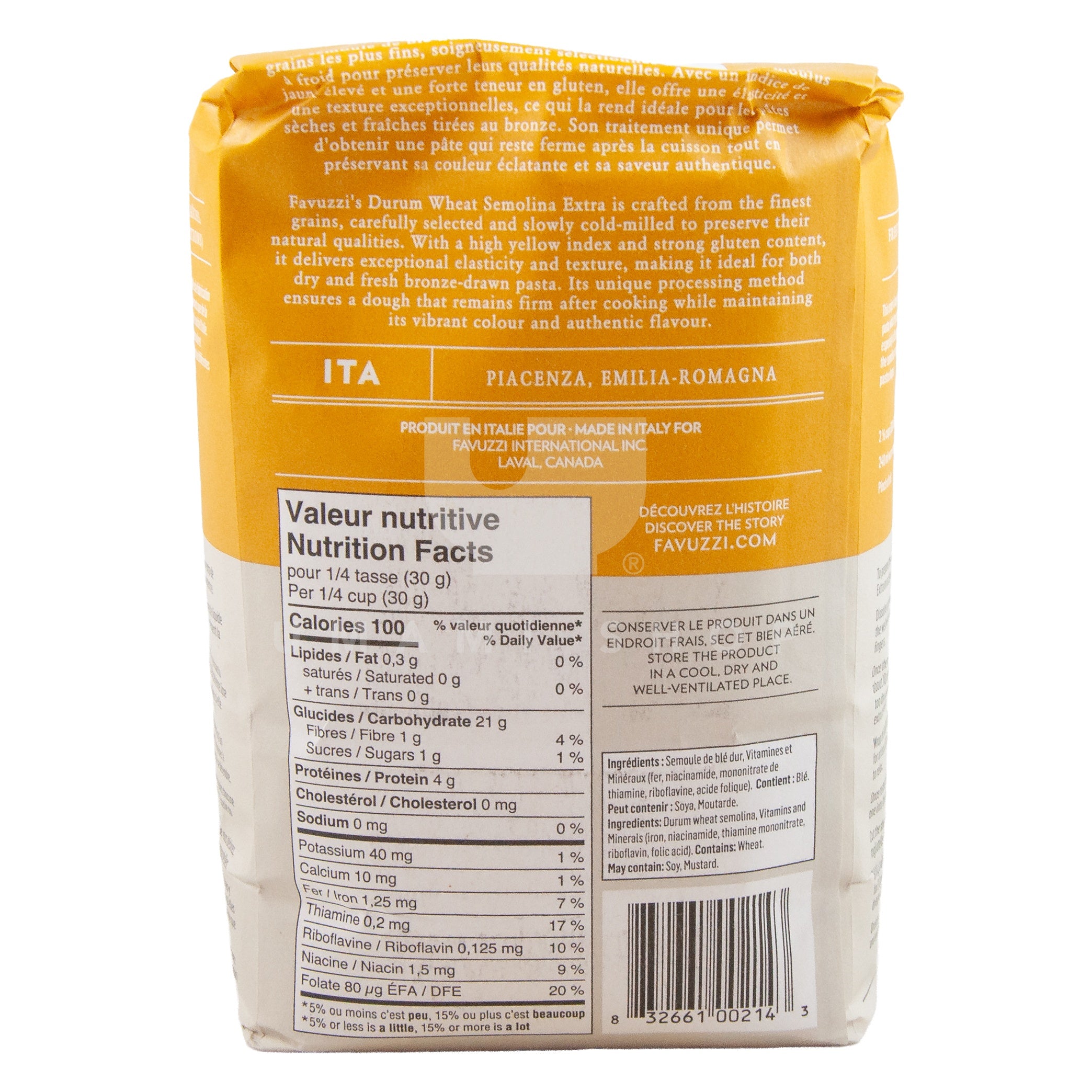 Favuzzi’s Durum Wheat Semolina Extra is made using the same time-honored method as our "00" flour. The grains are double-cleaned, first dry, then washed with water at the last mill in Italy to still use this traditional washing technique. This meticulous process removes impurities and softens the grains for better milling. Cold-milled in small batches, our semolina keeps its natural aroma and color, ensuring a premium pasta experience every time.